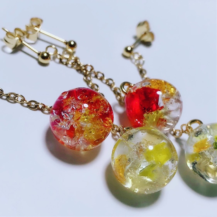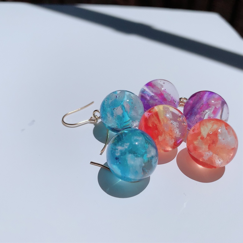 1粒1粒手作りなので、それぞれすこしずつ形も違い、樹脂を使っているのでアクリルやガラスと違い、割れにくくなっています。